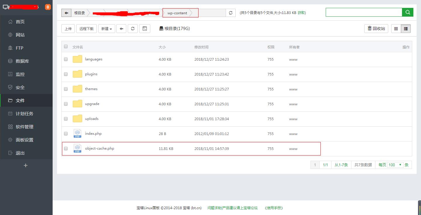 第三步:前往我们的WordPress网站目录里配置 object-cache.php 文件