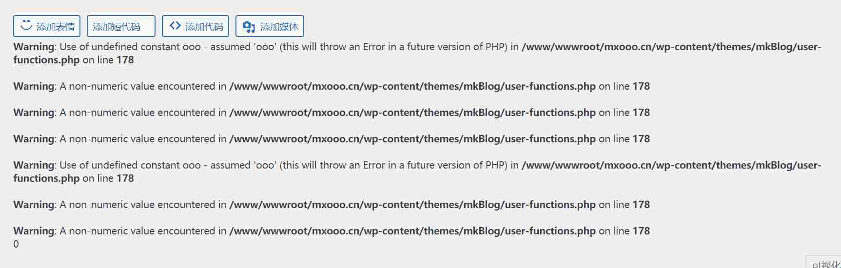 很幸运,一会儿就找到了,果断开始搬代码,开始很快,然后就是各种报错,因为我用js调用 wp.media.editor.insert 插入信息到后台的编辑框,之后就各种 Warning: Use of undefined constant – assumed 的问题,花了不少时间,改各种php环境,甚至我降级到php5.6,但是还是有问题,搞得我头大。。。