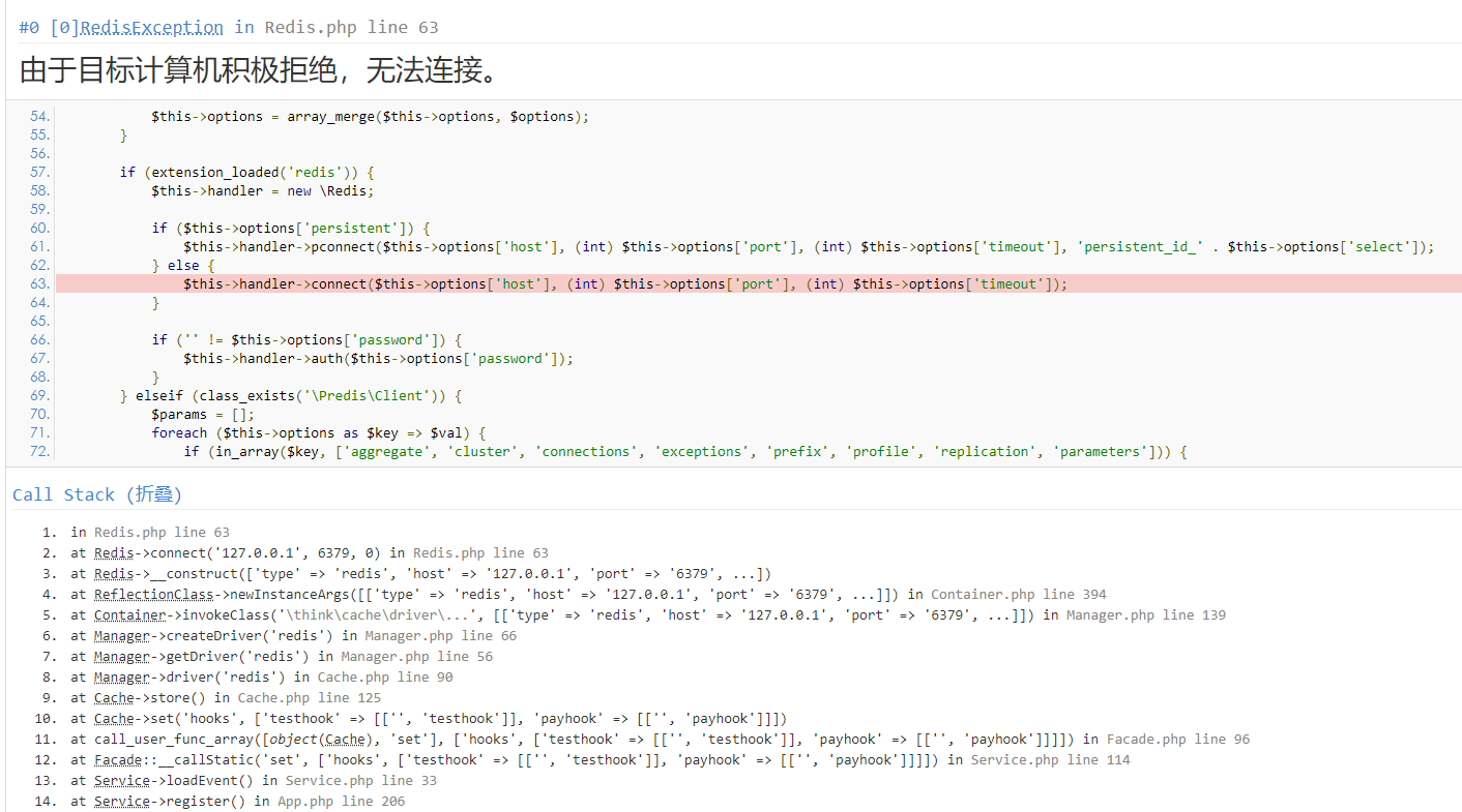 第一次遇到这种问题,其实就是redis的链接方式失败,我的解决办法很简单,直接禁用就行,不开启redis就没这个问题出现了。