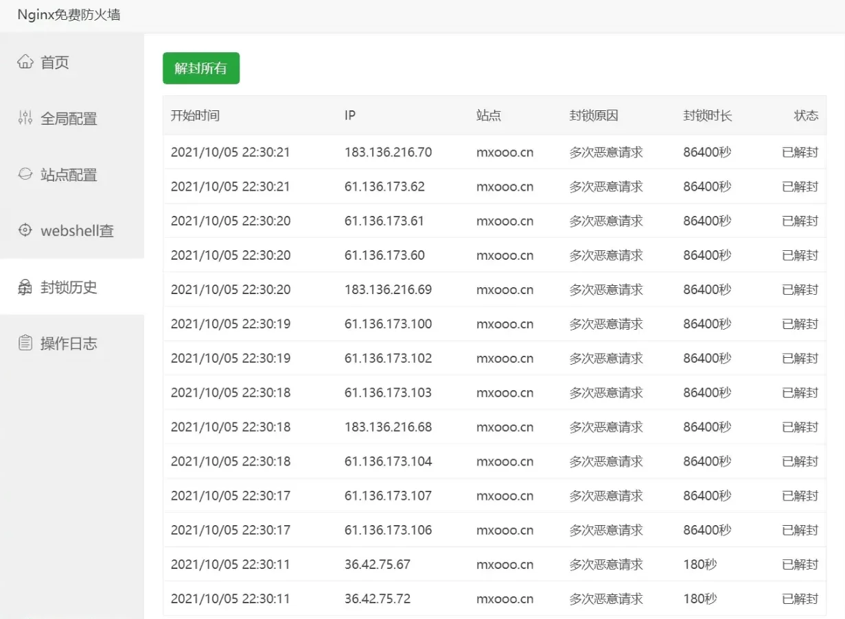 不知道大家建设网站有没有检测到恶意攻击骚扰和烦不胜烦的持续性侵入。最近打开现在宝塔后台,发现了网站已经有上千次的攻击记录了。