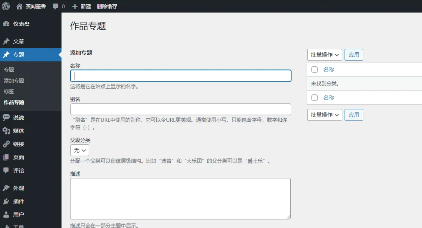 把上面的代码放入到 主题下面的 functions.php 文件中就行了,之后打开你的后台看一下左侧的导航栏吧,不出意外已经可以发布专题和新建不同的专题了,你可以自行探索了。