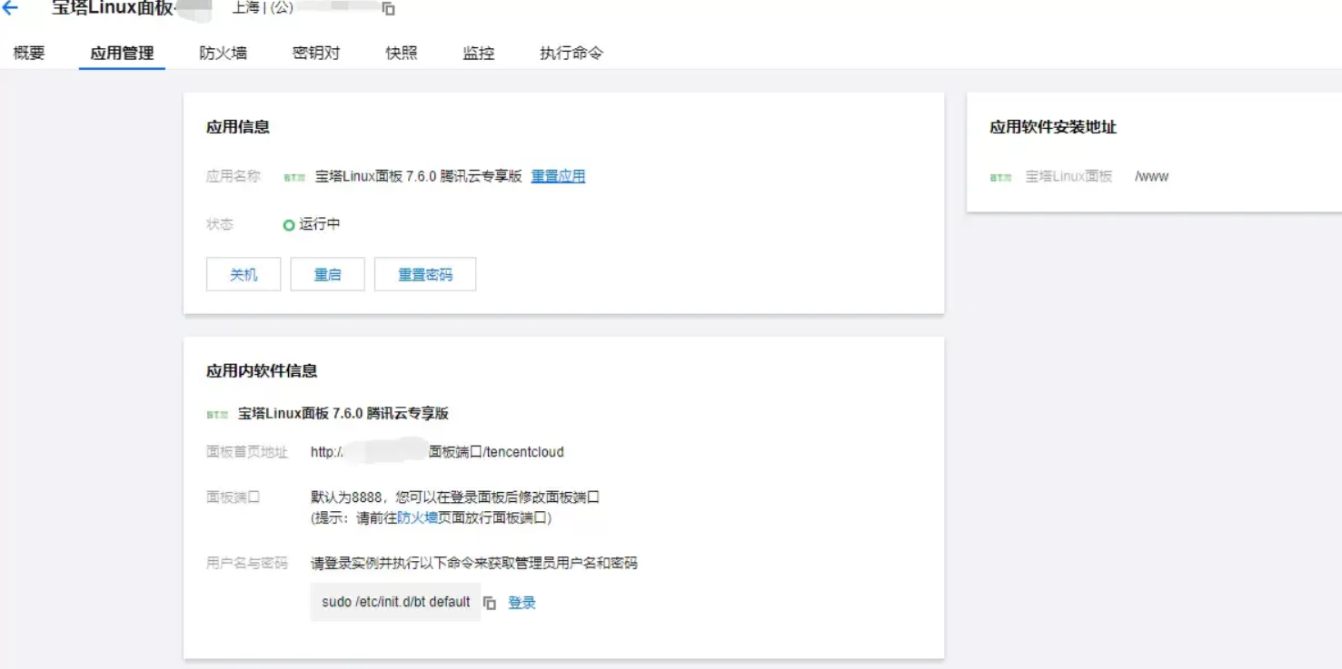 咱们进去之后基本就是这个样子的,(至于为什么更换系统之后重装宝塔,是因为自带的宝塔太难用,卸载掉腾讯插件之后各种提示。)