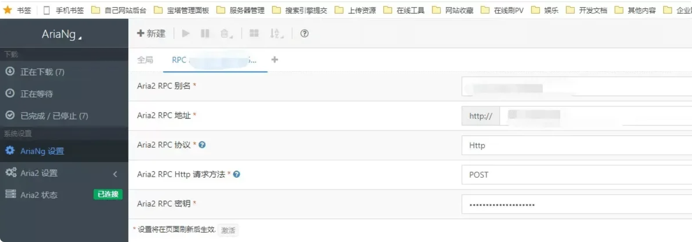 面板安装完了之后,需要在设置中设置一下中文+配置一下aria2的信息来实现链接请求。