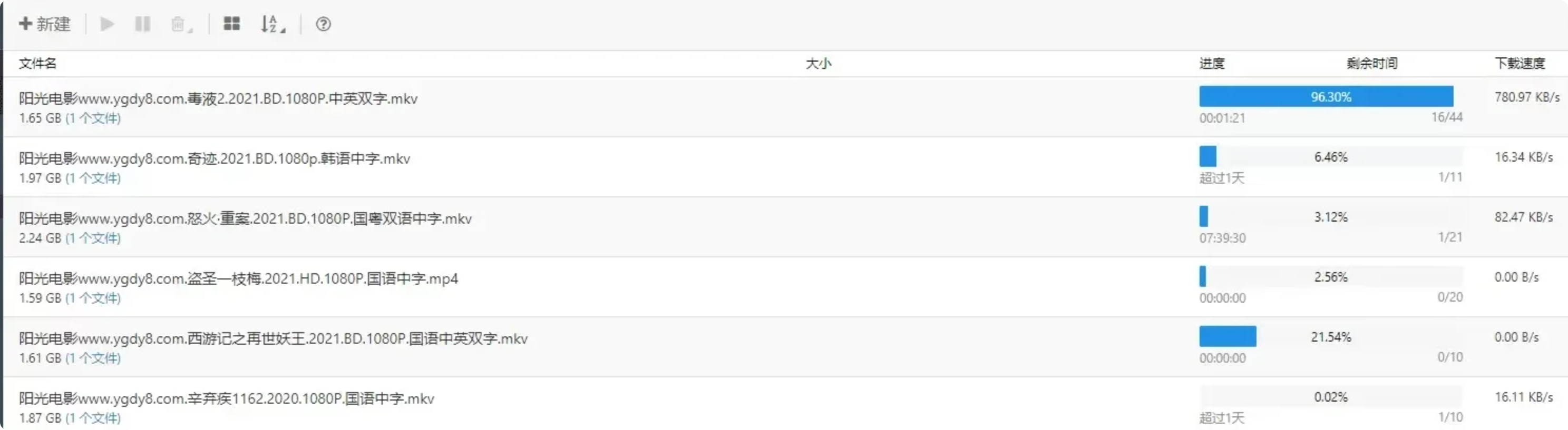 看到那个Aria2的状态吗?显示绿色已连接就代表你完成了所有的安装步骤,可以开始使用了。我这里找了一个叫阳光电源的网站找了一些高清电源资源,放在这边下载了,现在的速度大概是一个小时能下载完一步2G的电影。