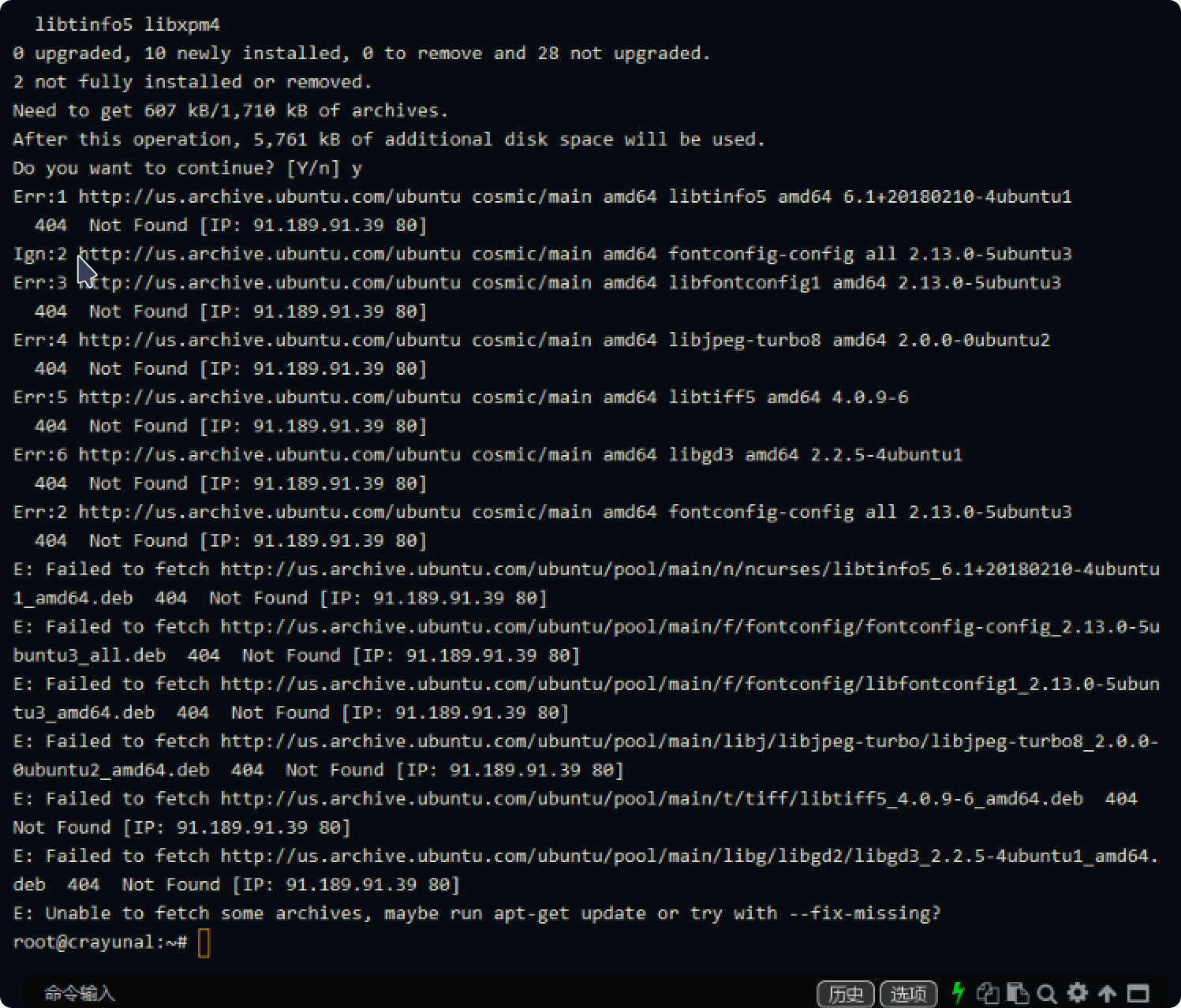 国外的服务器自然搭配的是国外的官方源,但是今天更新数据的时候发现无法安装我需要的软件,提示是因为无法正常安装这个软件,打不开对应的源,我手动用美国IP测试了一下,确实官方报404错误了。