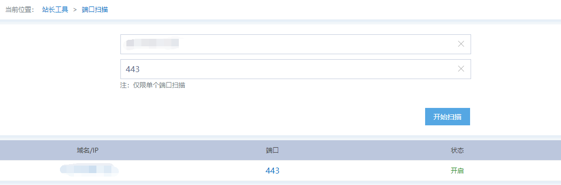 最终再次使用站长工具测试发现端口已经开启,实际通过ssl访问网站也是正常。