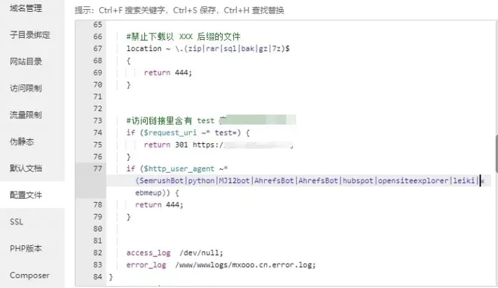 宝塔中直接把上面这段代码放在配置文件中就行,位置放在