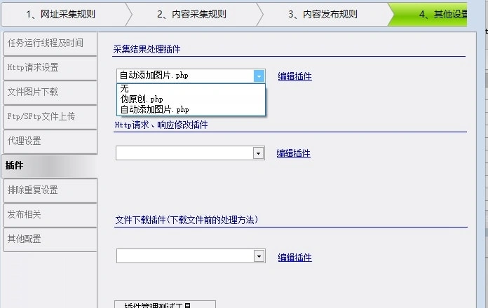 使用方法,导入到你的火车头采集器或者高铁采集器中,选择对应的任务,在其他设置中找到插件选项,采集结果处理插件下面选择自动添加图片.php 这个文件就行。
