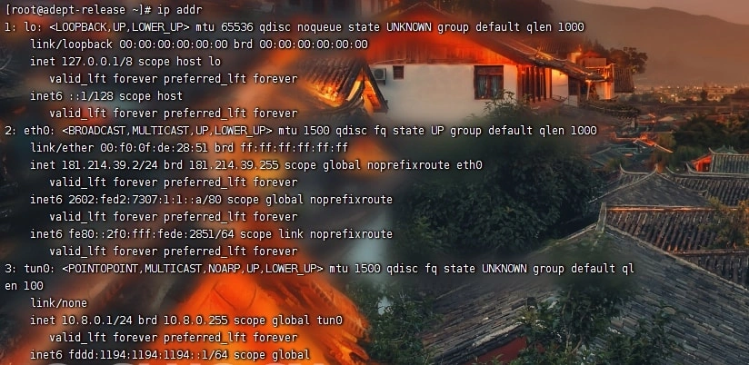具体查询请用 ip addr 查询一下,我这边查询发现我的 vps 里面还有内网全局tun 虚拟网卡。