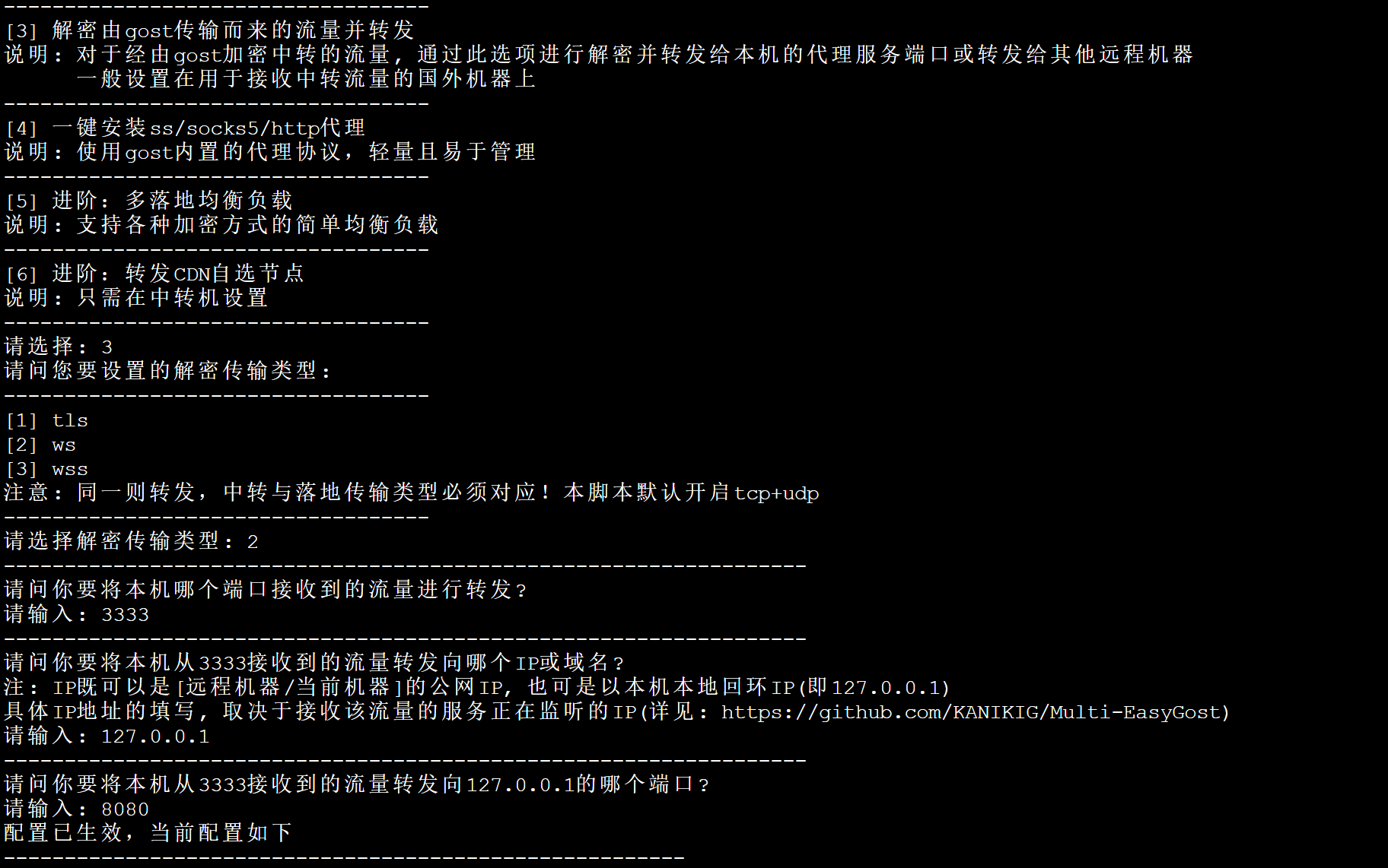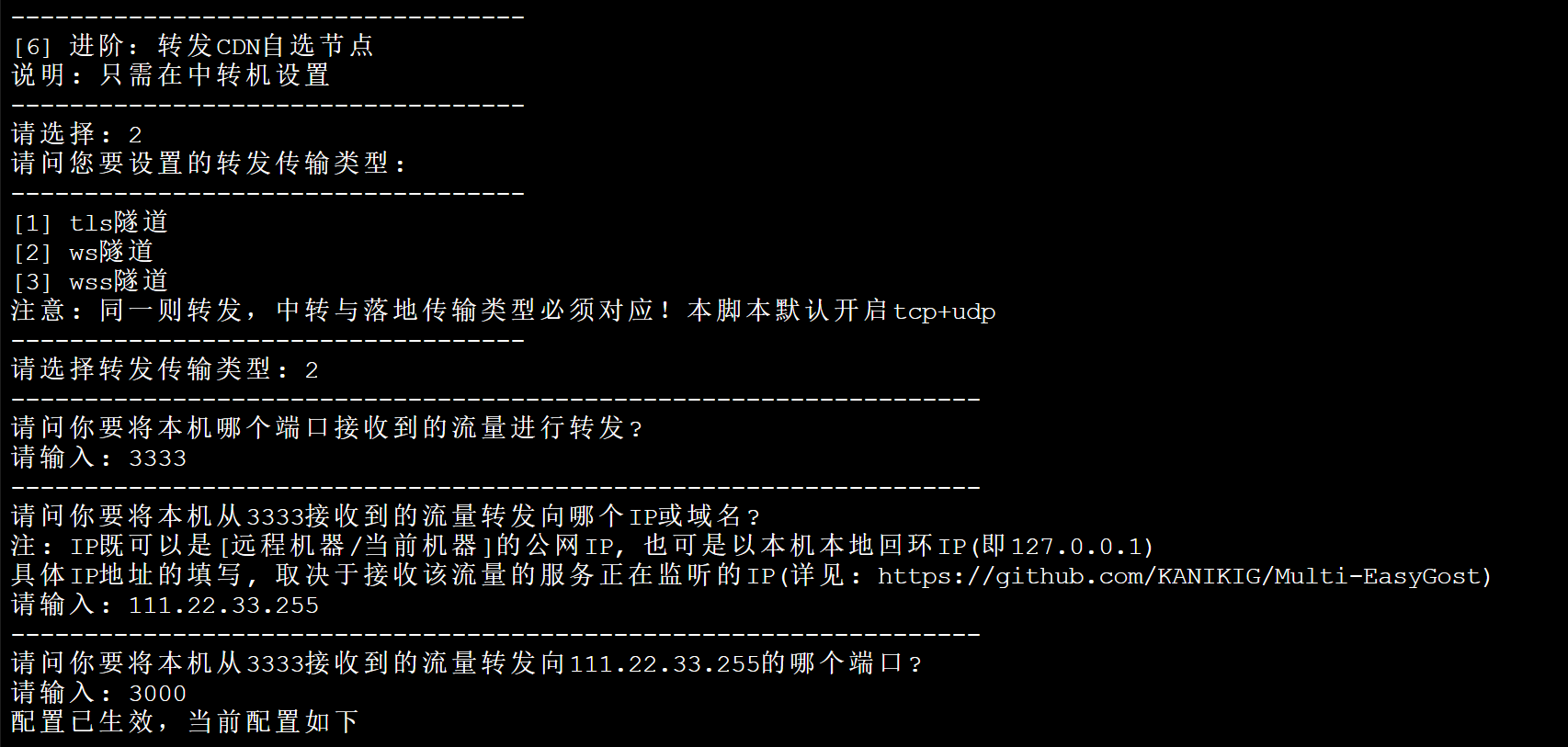 需要注意的是,中转机 3333 端口接收到数据,通过 gost 将数据转发到落地机 111.22.33.255:3000 端口