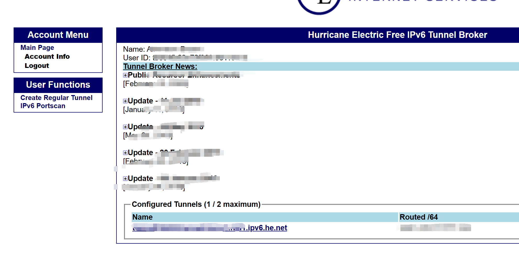 进行查看我们 vps 的所有网络,可以看到新增了一个 he-ipv6@NON 的方式,也可以叫做网卡,ipv6的出口全部走创建好的隧道。