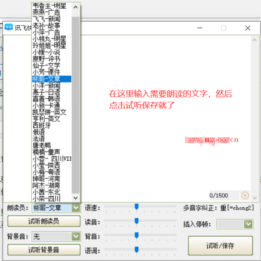 目前而言,自我感觉这个软件还是比较好的,里面内置了10多种不同的声音,甚至于连粤语,陕西话,河南话,湖北话,东北话,四川话都包含在内。当然了,外国话也是可以的,比如说英文,西班牙文,俄语,法语,韩语日语都可以。