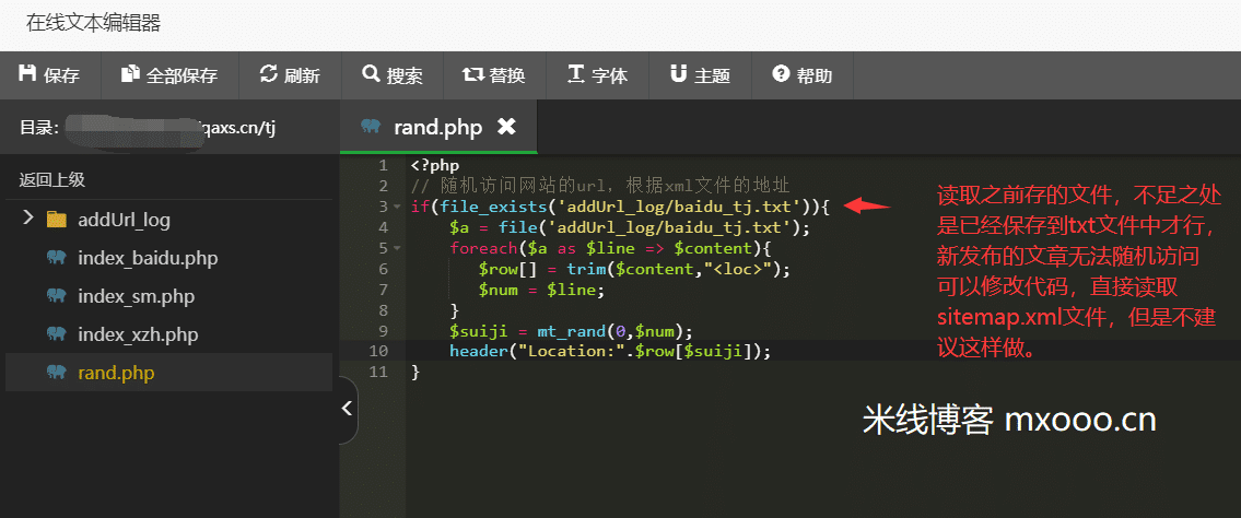 我的做法是这样子的,先用php提交sitemap.xml文件中的所有链接到百度站长平台,或者不提交也行,只要读取出所有的网站链接之后保存到一个txt文件中即可,然后我的做法是直接读取txt文件中的所有链接,使用的是按行数读取,并且保存所有的行数,然后再利用php中的方法,直接mt_rand(0,$line);就行了,这样子就做到了随机读取出任何一个链接,且链接很少会重复(数量多则重复越少,具体方法请百度查询mt_rand方法的作用)。最后,直接用php里面的重定向进行跳转就行了。