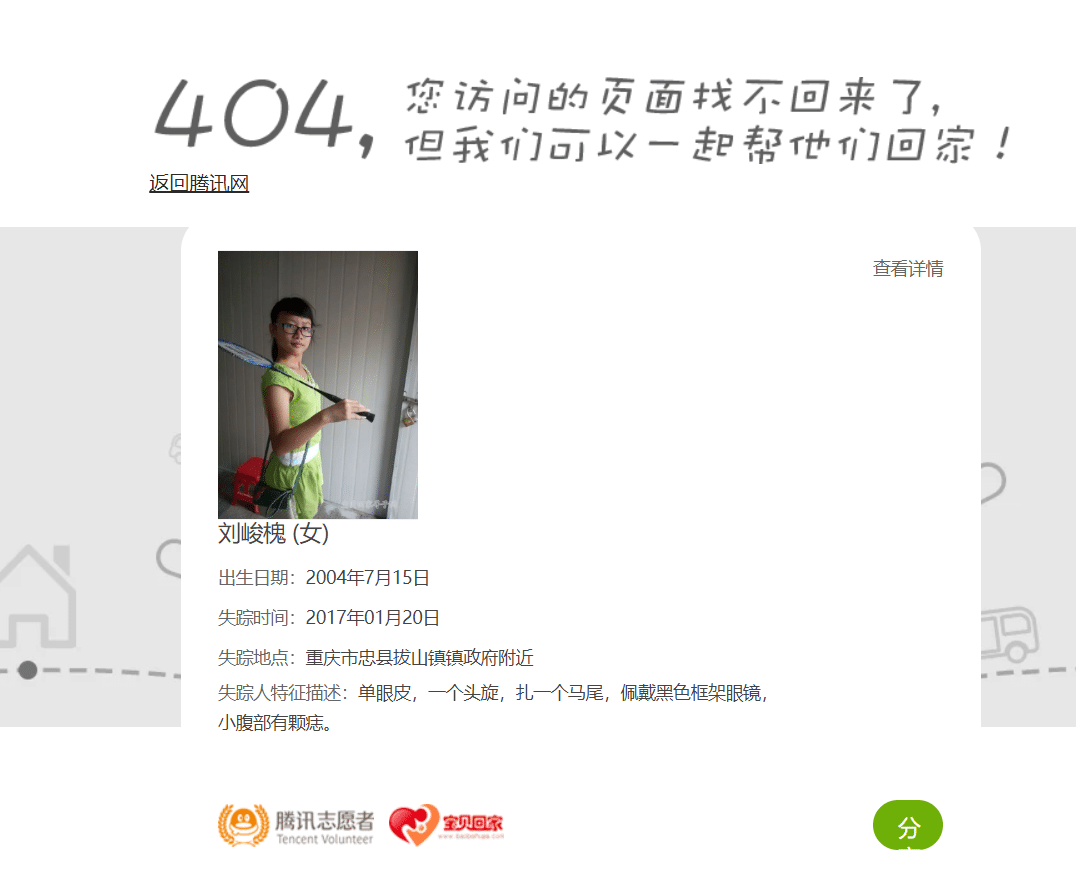 今天在做自己企业网站的时候,感觉在企业网站里面弄一个腾讯公益404页面还是不错的,所以我又找到了相关的代码,同时我也在本博客里面发布一篇文章当做一个留存档案。