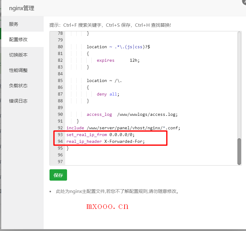 首先找到Nginx的nginx.conf文件,宝塔面板上直接在软件管理那儿,Nginx设置的配置修改栏中直接打开,然后在http{后加入如下两行代码: