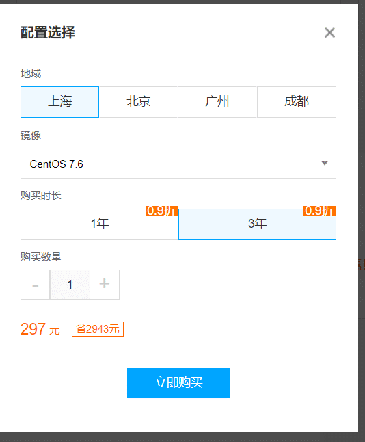 上面是我的付款信息,确确实实花了297块钱买了3年的服务器,我选择的节点是上海的,因为我几乎所有的服务器都是上海节点。